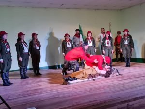 A peça Vida e Morte de Anita Garibaldi, pela manha (15) foi apresentada aos alunos e professores da Escola de Educação Básica Saul Ulysséa na comunidade de Cabeçudas em cumprimento ao Projeto Aldir Blanc 2021, por meio da Fundação Catarinense da Cultura. A trajetoria de vida e morte da heroína lagunense Anita, foi encenada aos alunos desta instituição de ensino, por cerca de uma hora, contando inclusive com a participação de alunos desta escola no elenco.